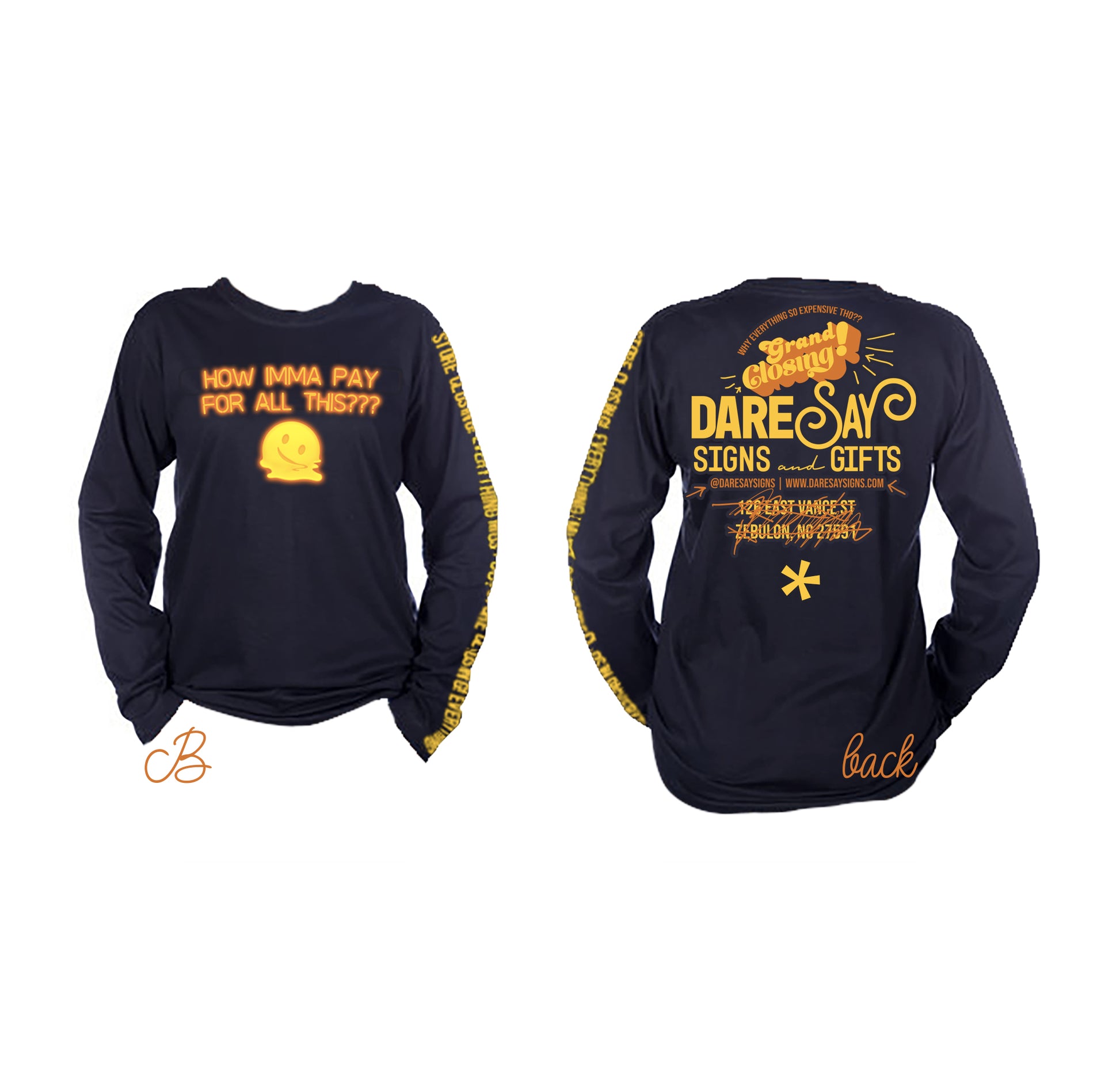 We love a good grand closing, don't you? These tongue-in-cheek shirts are for the celebration that is the end of the brick-and-mortar location for DareSay Signs!